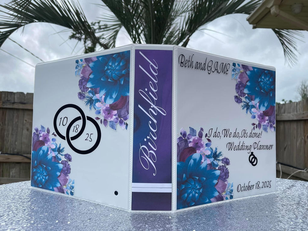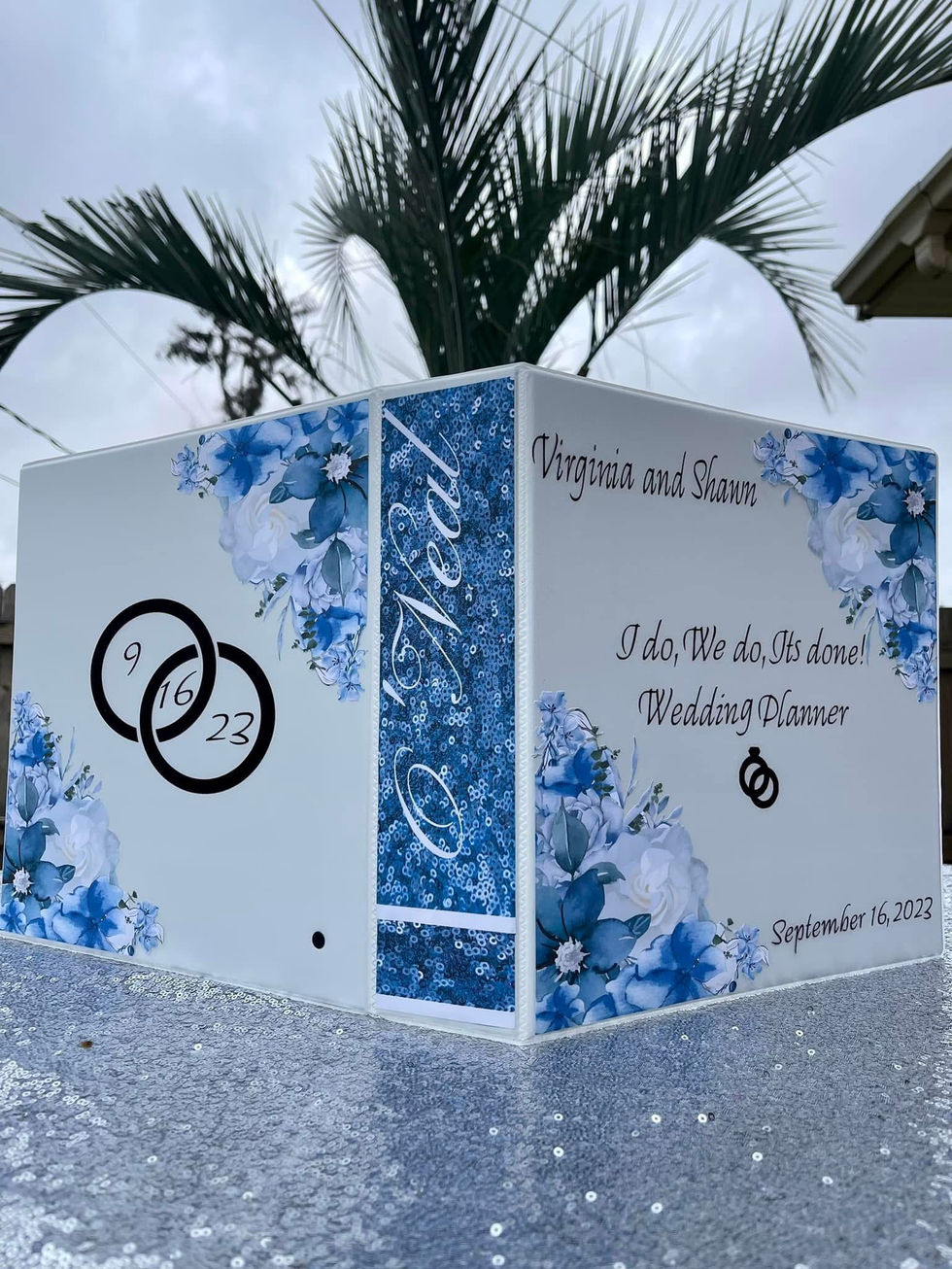 A collection of wedding planner binders with beautiful floral designs and ring accents. Including 5 chapters of planning information. Perfect for organizing your special day. These binders feature personalized touches and colorful floral displays, making them a delightful addition to any wedding planning process.